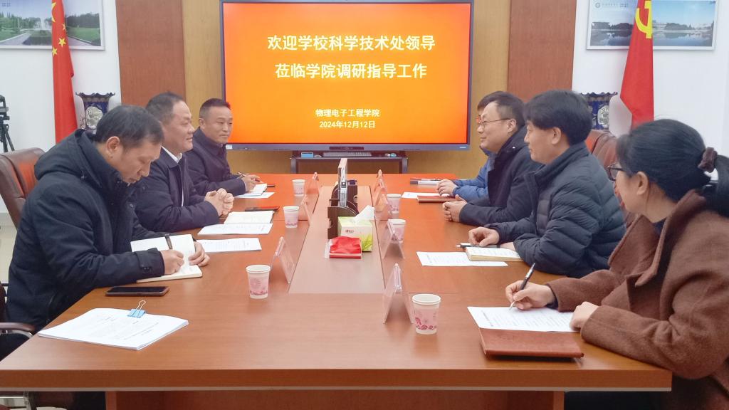 12月12日,校科学技术处处长牛继强、副处长汤清彬、平台与成果管理科科长李胜周一行莅临我POPjav 就省重点实验室工作和2025年国家自然科学基金项目申报开展调研工作。院党委书记方明科、院长龚克、副院长刘墨林、副院长陆阳参加了本次会议。