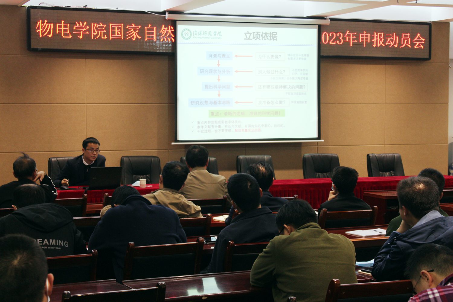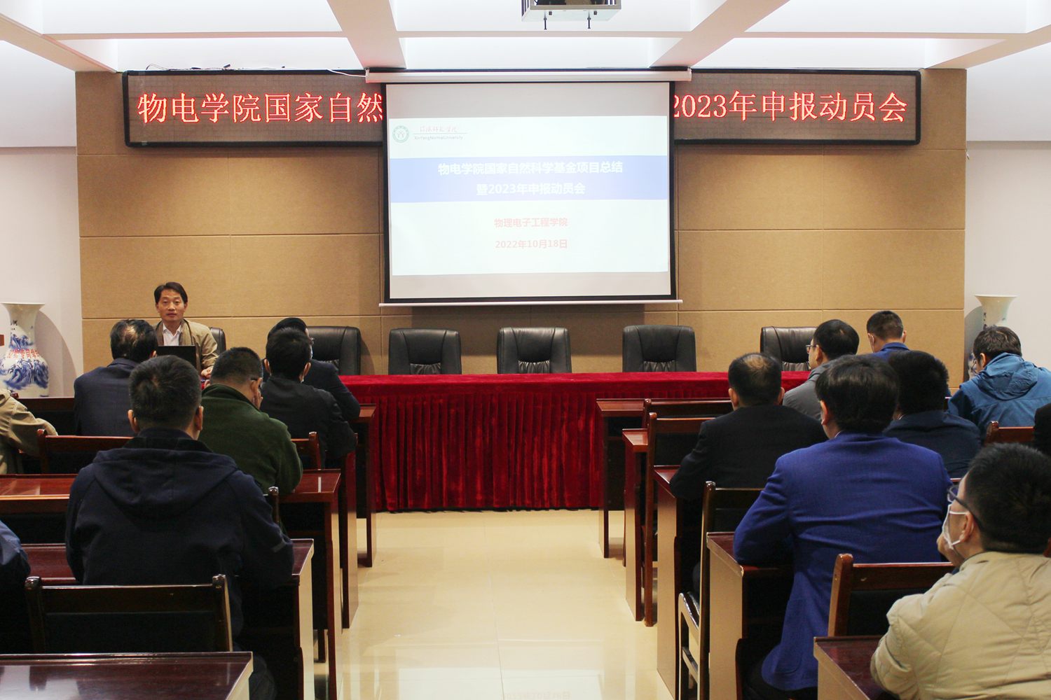 为加强国家自然科学基金项目管理、积极推动2023年申报工作,10月18日POPjav在理科楼四楼会议室召开了“国家自然科学基金项目总结暨2023年申报动员会”。POPjav 党委书记刘百超、院长涂友超、副院长龚克、刘墨林、汤清彬出席会议。具有高级职称、博士及拟申报2023年国家自然科学基金项目的50余名教师参加了动员会。会议由龚克主持。